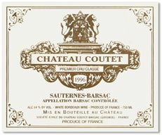 Drinks & Co "Oeil : Château Coutet 2007 montre une couleur jaune d'or avec un reflet d'une certaine intensité. Nez: reposant sur un lit de confiture d'abricot et minéralité doux. Bouche: La bouche est douce, avec onctuosité. Il a un bon équilibre et une structure parfaite. La pointe de brûlures d'estomac se fait sentir, il est un sauternes frais. Sentiment de douceur, qui est exprimé en longueur et très loin d'être constante, est ponctuel mais intense. Grand tour et la persistance agréable. Arrière-goût souvenirs délivrant citrus mousse, blanc fruits à noyau et confitures. CÉPAGES: 75% Sémillon, Sauvignon Blanc 23% et 2% Muscadelle."